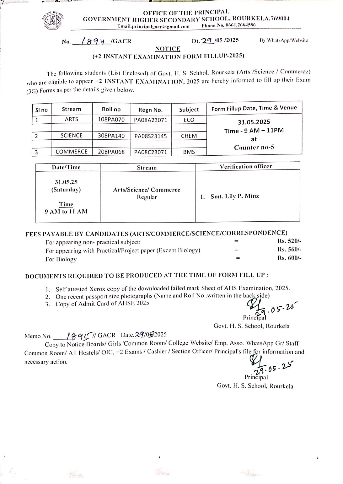 +2 Instant Examination Form Fill-up Notice