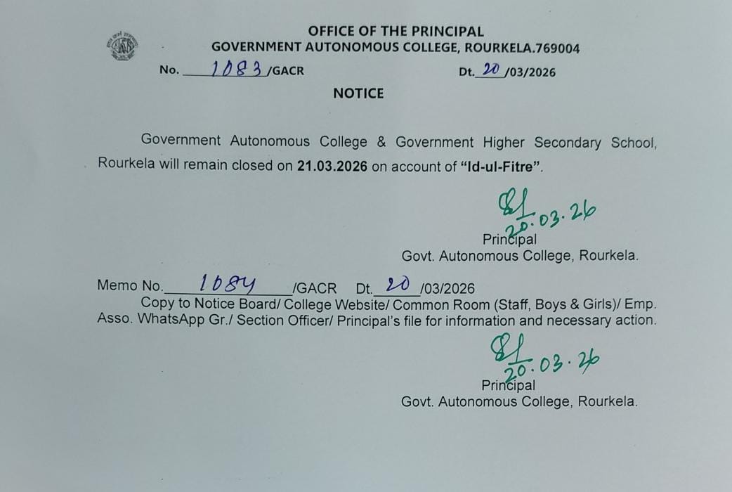 # Class Suspension notice for the students of Govt. Auto College Rourkela & Govt. H. S. School Rourkela