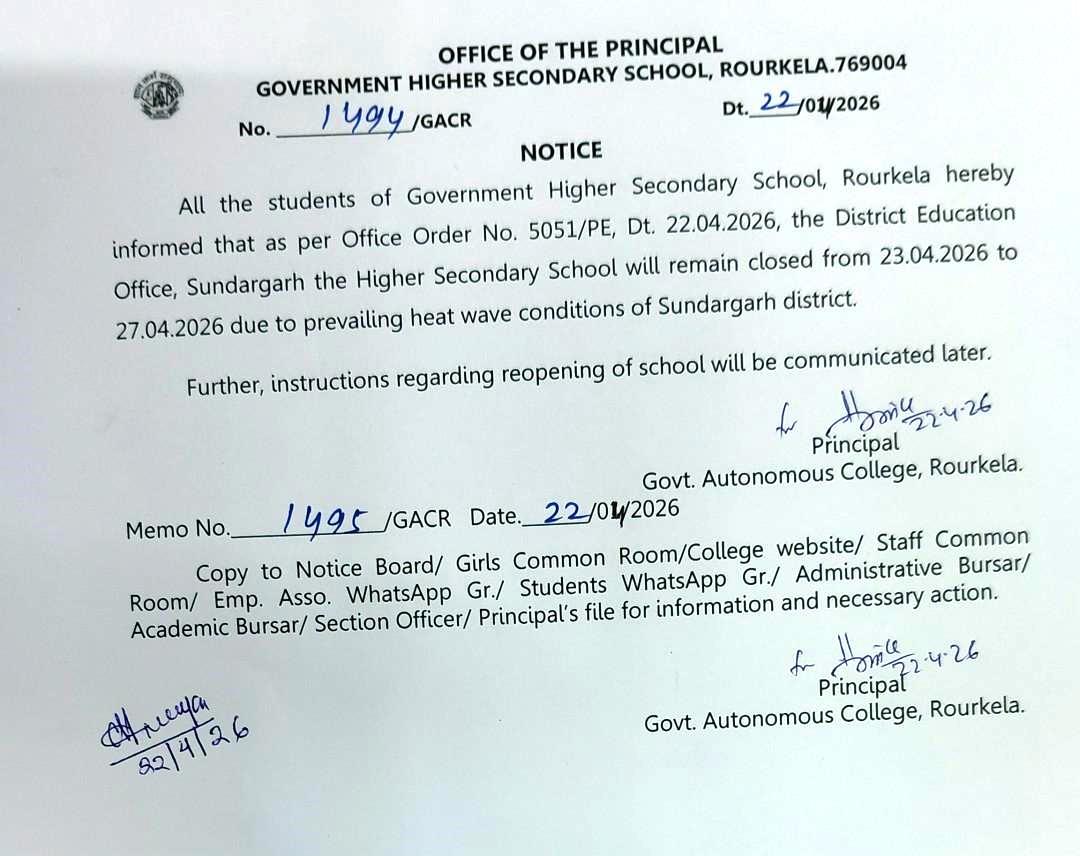 # Govt. Higher Secondary School will remain closed from 23-04-26 to 27-04-26 due to heat wave