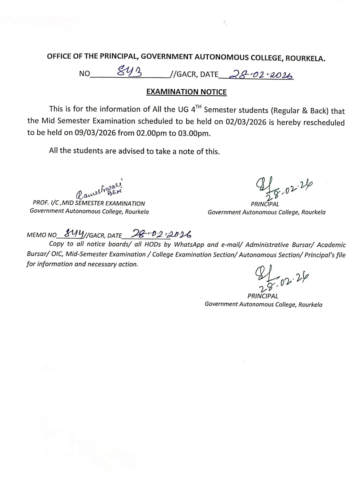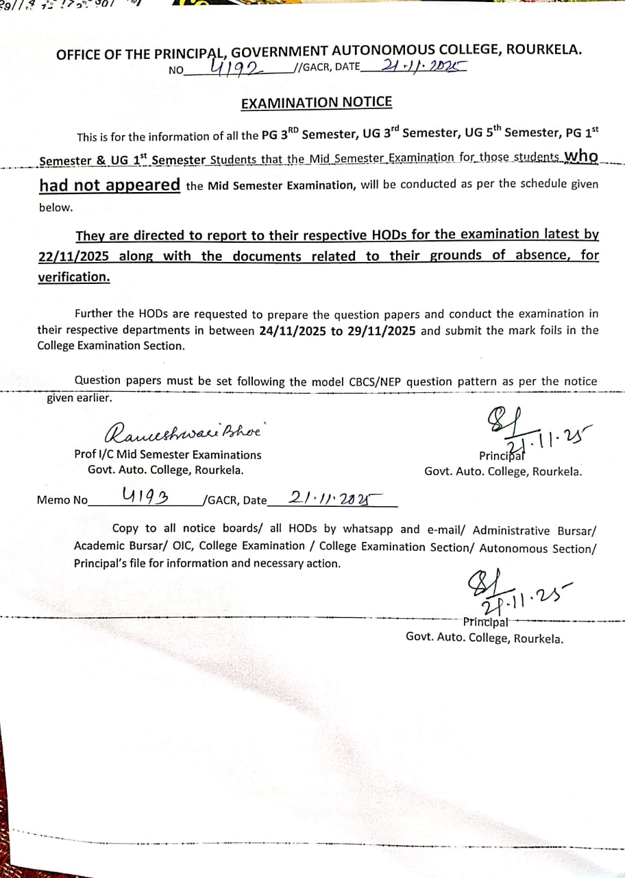 Mid Sem examinaion notice for UG 3rd, UG 5th and PG 3rd Semester Students